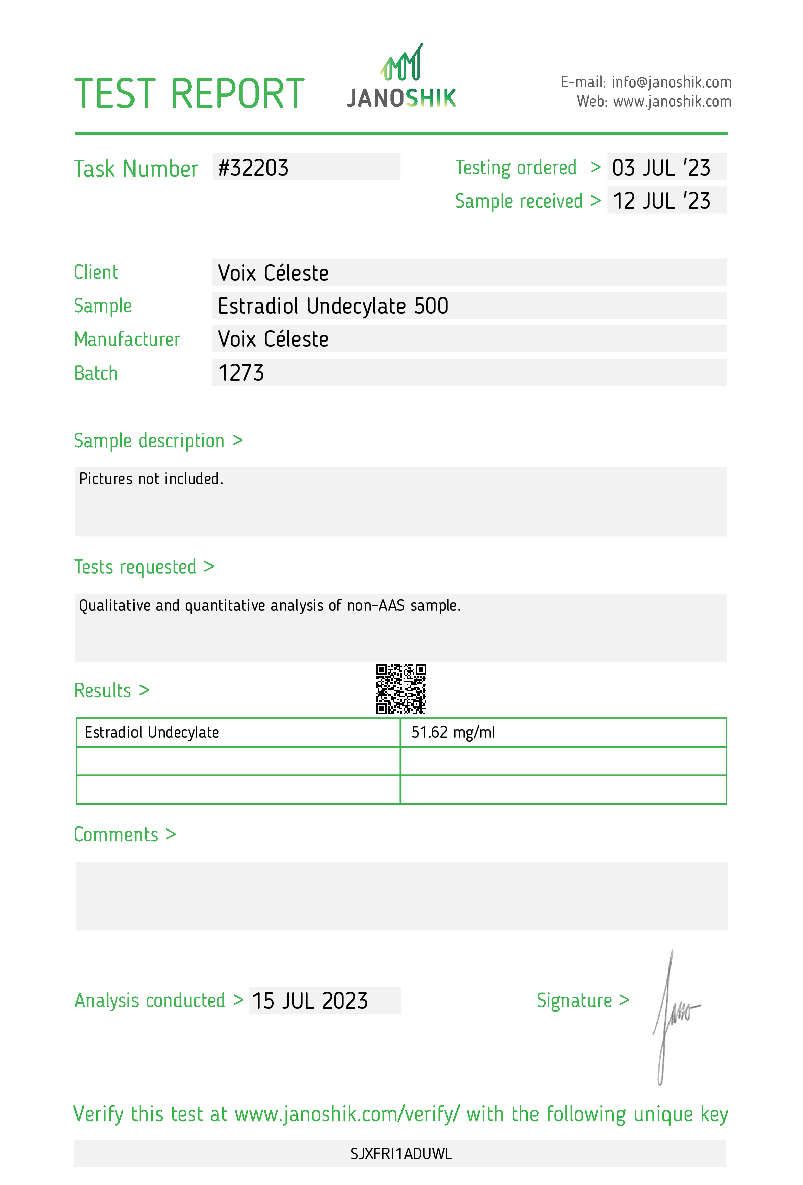- Janoshik verification key: SJXFRI1ADUWL